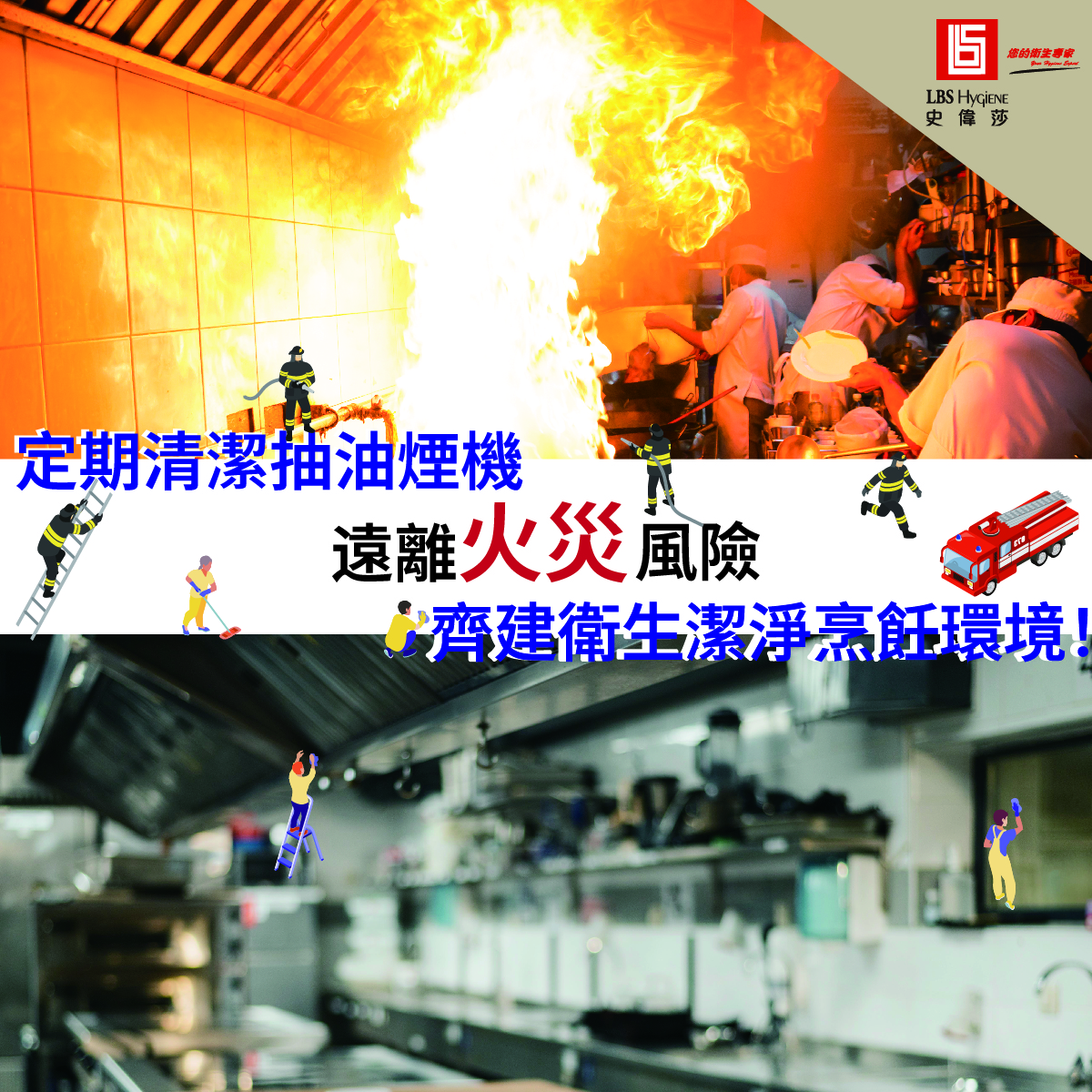 有時候大家都會看到有關餐廳火災的新聞。就好比上兩個月在荃灣的一間茶餐廳因為抽油煙槽搶火導致火災發生,雖然幸好事件中並無人受傷,但如果有為抽油煙機定期清理油污,就可以避免到事件的發生以及當中的損失,確保廚房的安全。