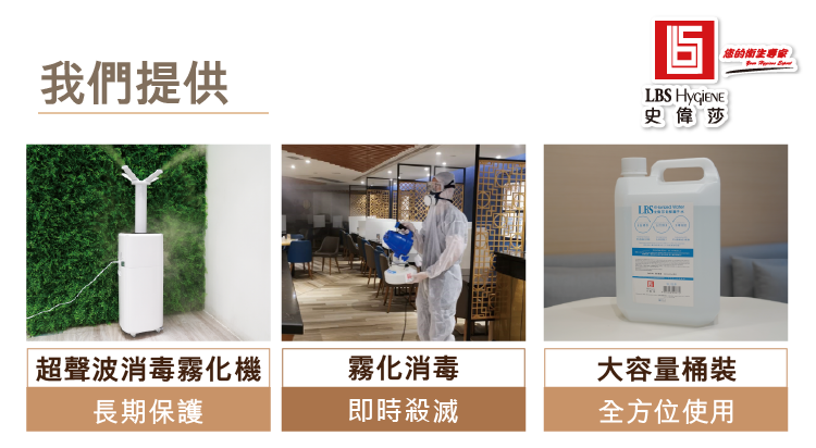 店舖可以用作抹拭枱櫈、場內設施;亦可配以超聲波消毒霧化機或LED藍光納米消毒噴霧槍使用,令大家消毒更方便。